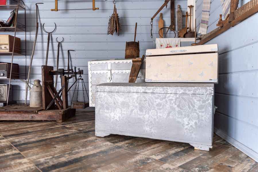 Зал оформлен в стиле европейской деревни: стены украшают панно ручной работы из ботанических барельефов растительной тематики, предметы старины обрели вторую жизнь и необычны в использовании.