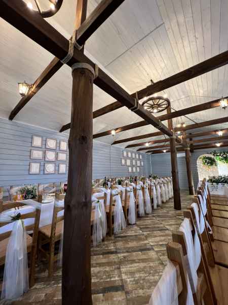 Большой банкетный зал – это отдельно стоящее здание. В зимнее время отапливается печью-камином.
